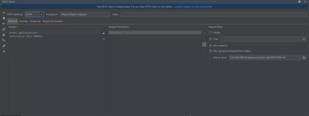 上面的历史记录就是一个完整的IDEA REST Client请求脚本,如果你是从控制台触发的,那么可以直接复制历史请求记录的文件放到项目里作为HTTP请求的脚本,给其他成员共享,如果不是,也可以直接新建一个.http或者.rest结尾的文件,IDEA会自动识别为HTTP请求脚本。