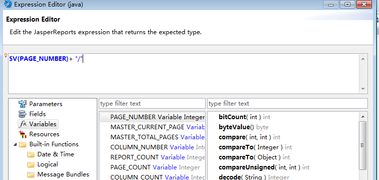 在当前页加上 斜杠/ ----》($V{PAGE_NUMBER}+ "/")