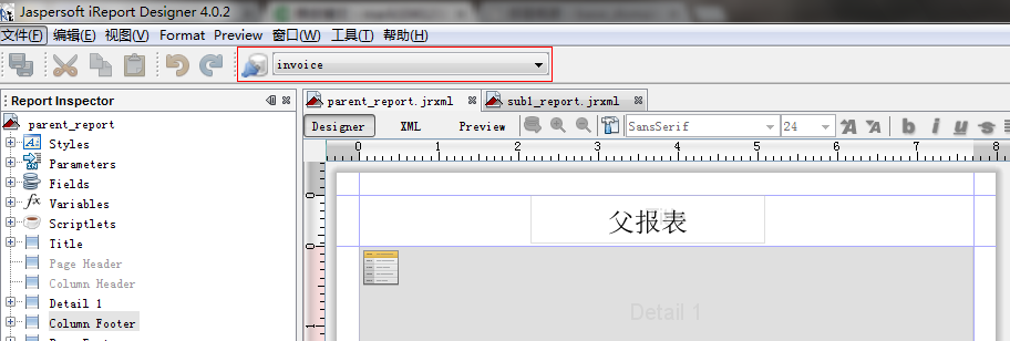 首先新建sub1_report,创建步骤参考上面。效果如下图:
