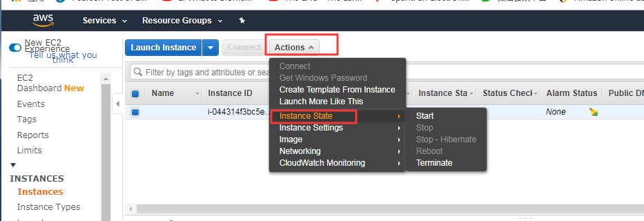 3. EC2页面,停止EC2,可以看到邮箱收到的邮件