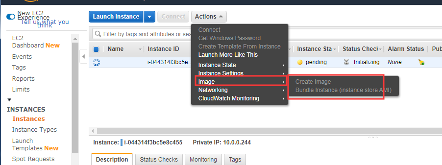 由下图可以看出,ec2在pending状态,就不能创建AMI。