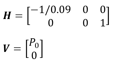 那么如何从系统状态X(k)得到Y(k)呢?这个时候查阅网上资料发现在海拔较低且变化范围几百米以内时,气压与高度成线性关系,其系数为0.09,气压每变化ΔP时,高度变化0.09*ΔP,由此我们可以得到关系:![]()