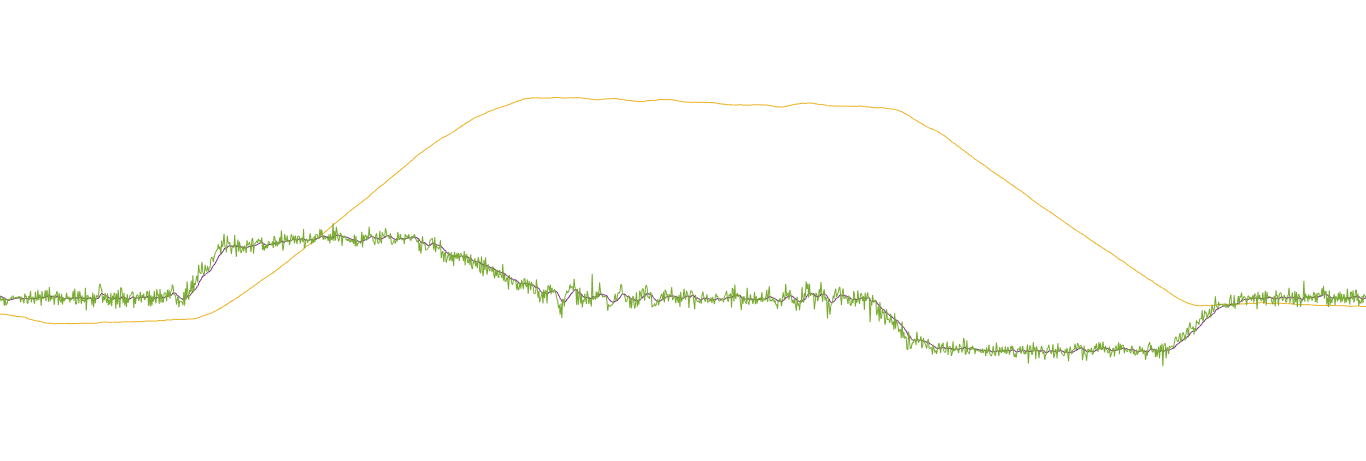 首先来感性得认识一下两个直接影响卡尔曼滤波效果的参数测量误差R和过程误差Q。测量误差R是反映传感器得到信息质量的优劣,传感器得到信号质量越差,则R应越大,从而有更强的滤波效果。虽然R越大滤波效果更强,但是响应速度会变慢,因此R不宜过大。一般可以通过传感器的数据手册直接得到其测量误差,也可以一个个值试,直到得到想要的滤波效果。而过程误差Q反映的是在测量过程中受到别的环境因素影响的大小,如气压计易受到风、温度的干扰之类的,当Q为0时,得到的滤波效果会非常平滑,但是会存在累积误差之类的缺点,当Q较大时,滤波效果会变差,一般Q取一个较小值比较合适,比如0.0001。