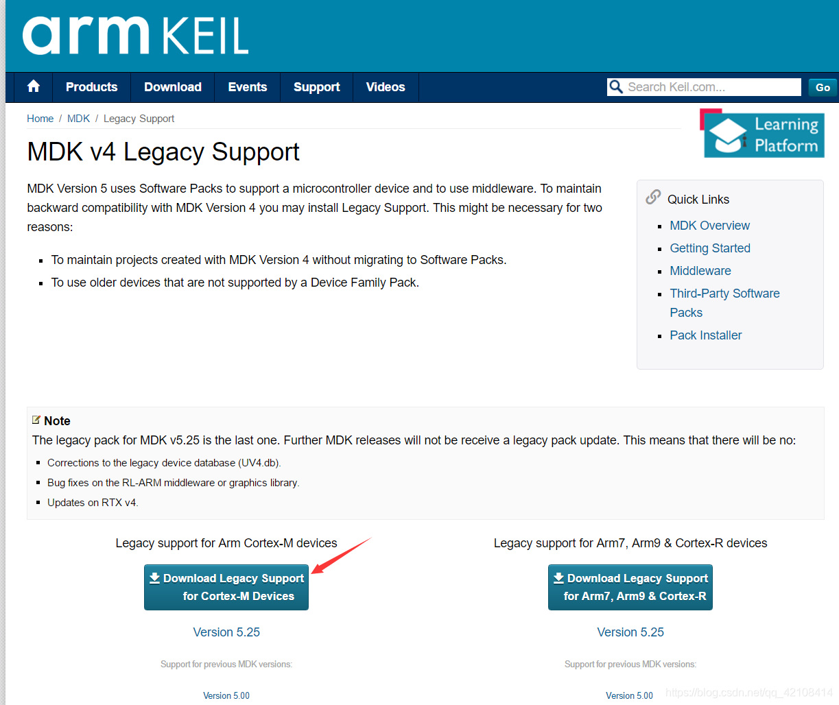 MDK v5.25以下版本均可下载对应legacy解决MDK v4工程兼容问题。