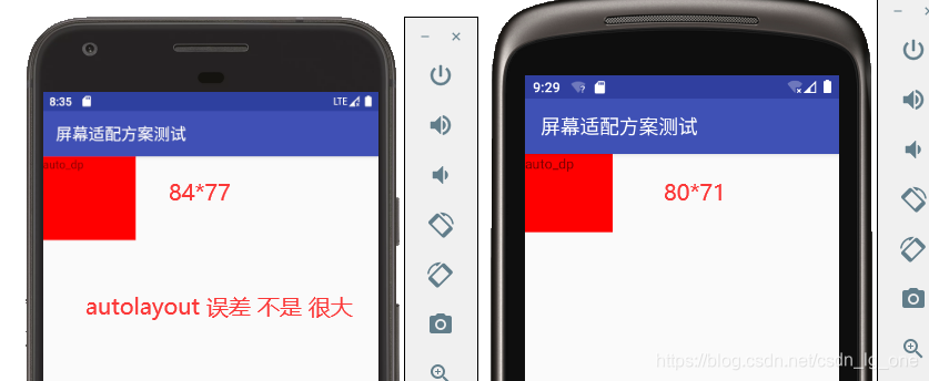 这里讲的是google自带的dp适配、比较久远的限定符适配、鸿神的autolayout、今日头条的autosize,下面大家就一起来看看他们的效果吧:(仅单一维度测试,数值也可能不标准,仅供参考,大家不要较真哦)