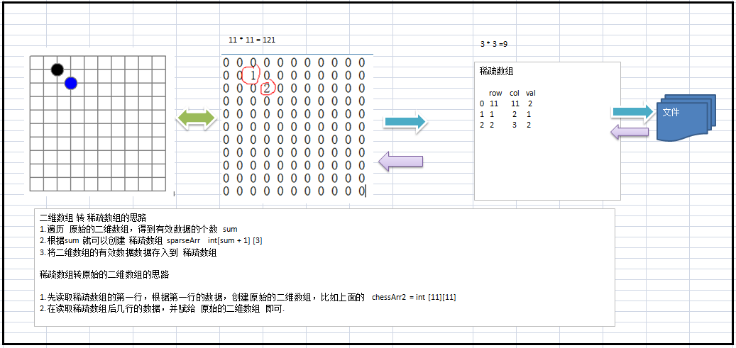 (1)使用稀疏数组,来保留类似前面的二维数组(棋盘,地图等等)