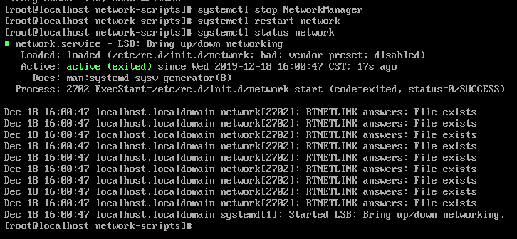 此时显示无法开启LSB,网上很多信息说要把网卡的MAC地址配置到配置文件中,在亲自尝试后仍然不行。其实我们只需要禁用网络管理器,然后重启网络服务即可。