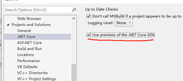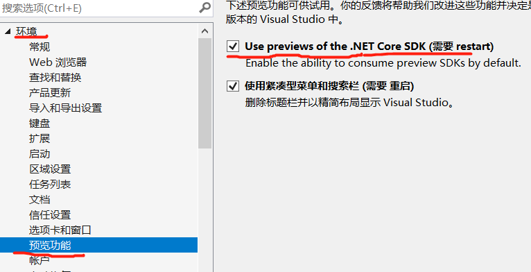 1、工具 -> 选项 -> 项目与解决方案 -> 右侧,勾选预览版(这个方案是2019 最旧版本的,已取消请忽略)。