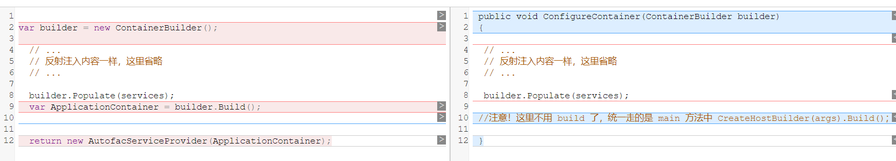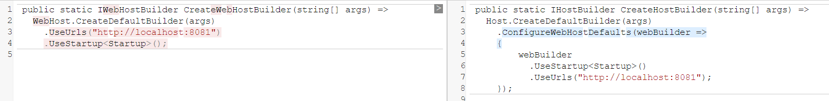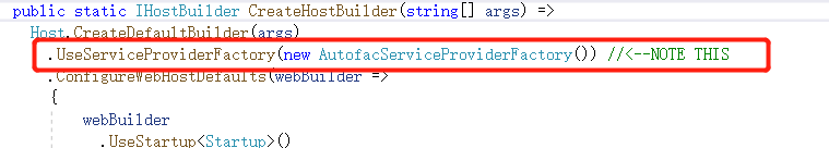 在 Program.cs 文件中,修改HostBuilder生成方法,注意在main 方法里引用也要做相应的修改。