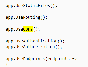 然后就是要注意中间件的顺序,这里记得还要带上 policy 的名称 ,还是 app.UseCors("LimitRequests");: