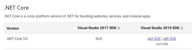 所以,如果我们要升级 3.0 的话,就肯定要安装指定的 SDK 了,下载地址:https://dotnet.microsoft.com/download/visual-studio-sdks