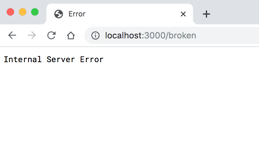 这时候访问 localhost:3000/broken 就会直接返回 Internal Server Error(服务器内部错误),不会显示任何错误信息: