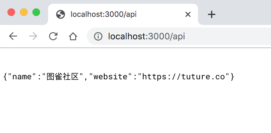 我们可以用浏览器访问 localhost:3000/api 端口,看到返回了想要的数据: