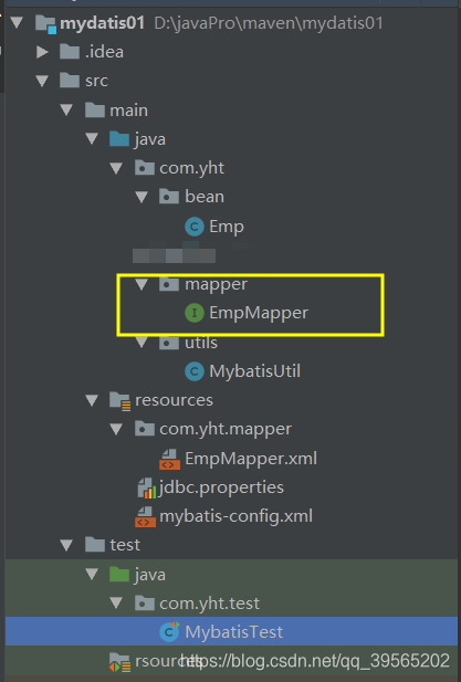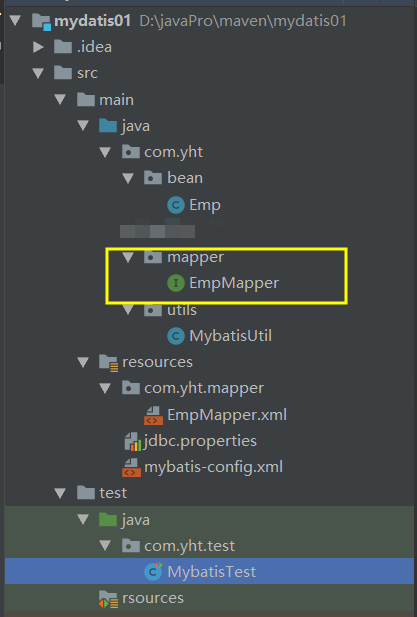 然后上面配置的mapper配置文件最好是放在一个文件夹下,因为我们在以后的开发或者学习过程中可能要对很多的表做不同的mapper,所以我们最好在最开始就养好习惯,创建的resorces文件夹下: