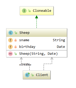 Prototype模式中实现起来最困难的地方就是内存复制操作,所幸在Java中提供了clone()方法替我们做了绝大一部分事情,这里需要注意的是,clone()方法是Object里面的,但是如果需要克隆类的对象,必须实现Cloneable接口。