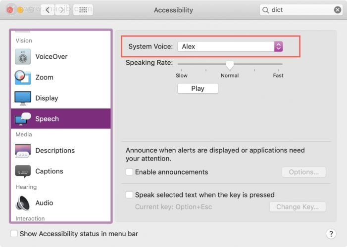 macOS附带了许多预装在操作系统中的声音。默认情况下,所有语音都带有“ Alex”语音。要选择您要使用的声音,请按照以下步骤操作: