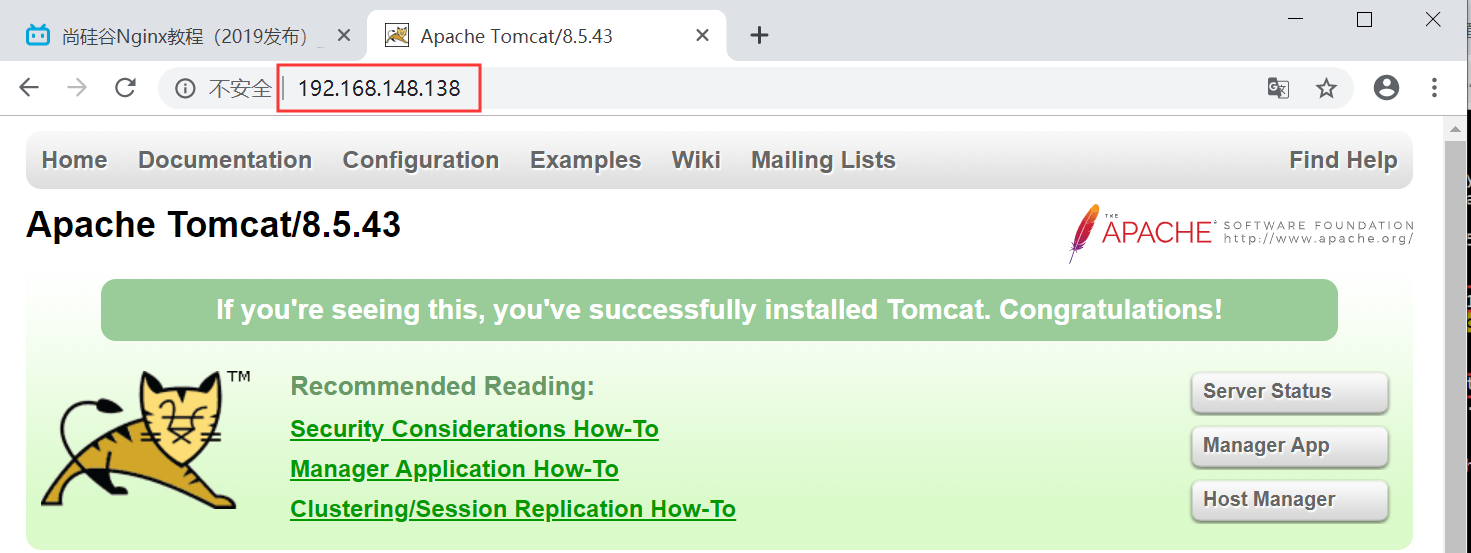 1.4、在浏览器中输入ip地址测试,发现此时页面已经被转发到172.18.51.193(安装tomcat的windows主机)的8080端口