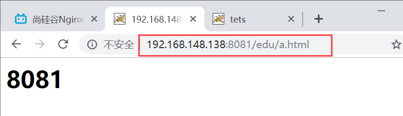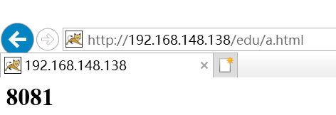 (1)实现效果:地址栏输入ip地址http://192.168.148.138/edu/a.html实现负载均衡效果,转发到后台服务器8080和8081端口中去