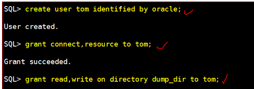 将导出的SCOTT用户下的DEPT表和EMP表导入到tom用户下
