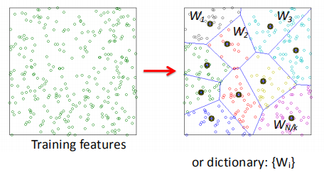 使用K-means聚类,构成由Word{Wi}组成的词典。