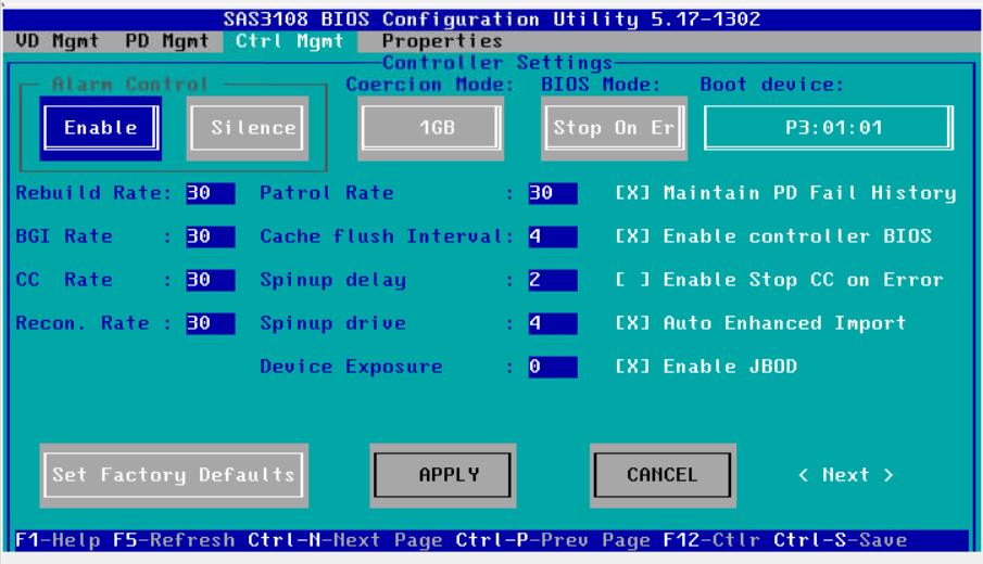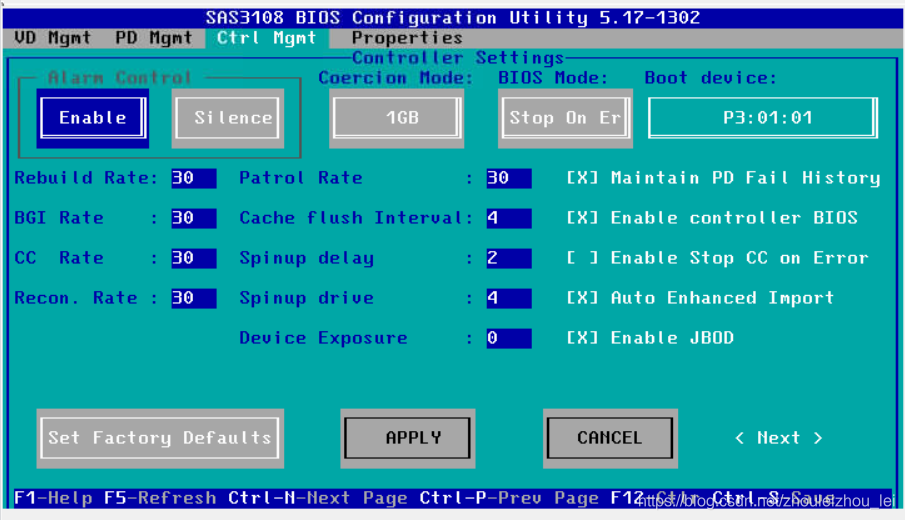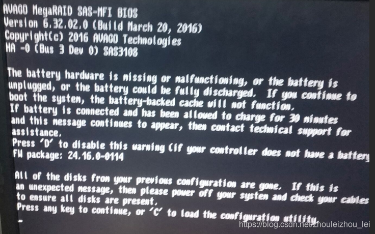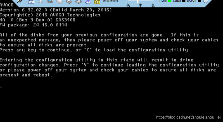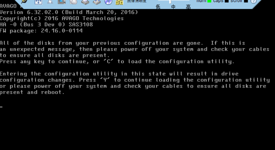 服务器开盖发现没有RAID电池,从报错界面进入RAID卡配置界面。