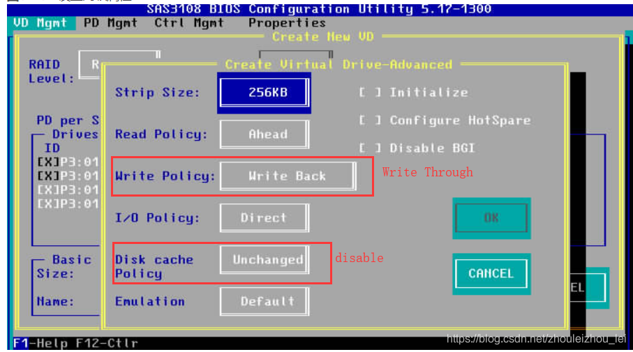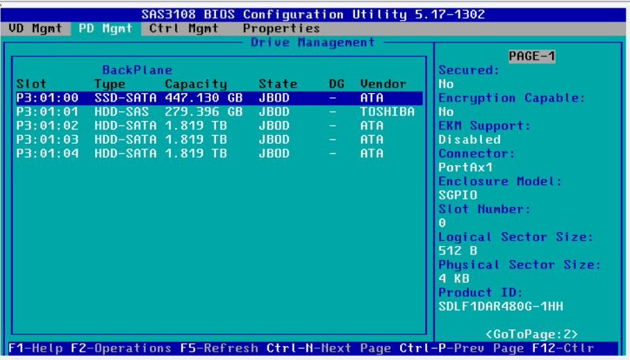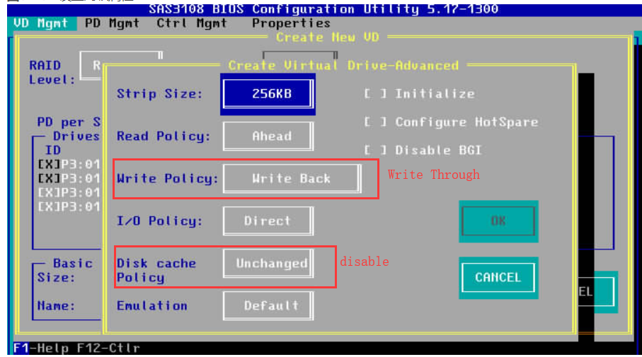 进入RAID卡配置界面确认没有使用缓存(打开了JBOD),配置了RAID的话需要确认设置了透写和关闭了缓冲策略。