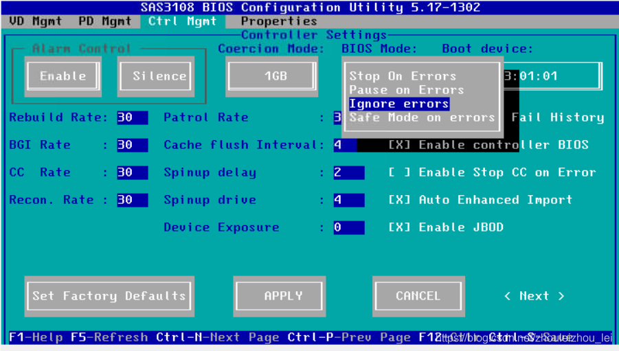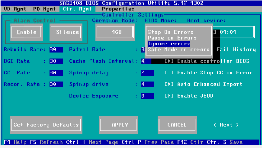 将BISO Mode配置为Ignore errors,忽略告警。