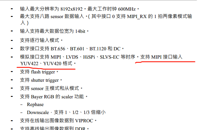 a. MIPI接口支持图像格式,是否支持CSI YUV输入