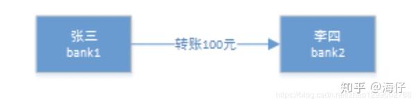 本实例通过Seata中间件实现分布式事务,模拟两个账户的转账交易过程。两个账户在两个不同的银行(张三在bank1、李四在bank2),bank1和bank2是两个微服务。交易过程中,张三给李四转账制定金额。