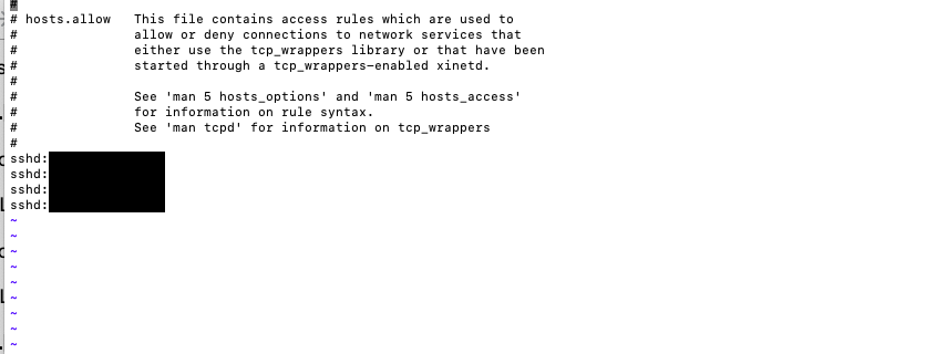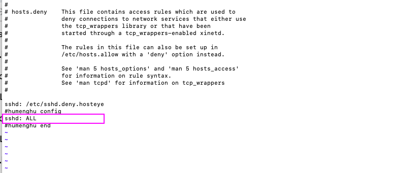 添加允许sshd访问的公网IP,格式为 sshd: ipaddr