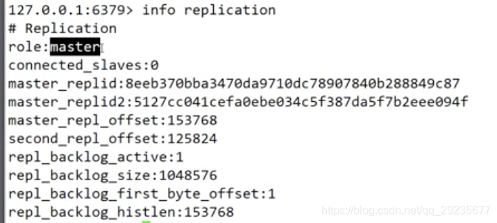 redis查看当前节点的身份命令:info replication(把之前的主关机)