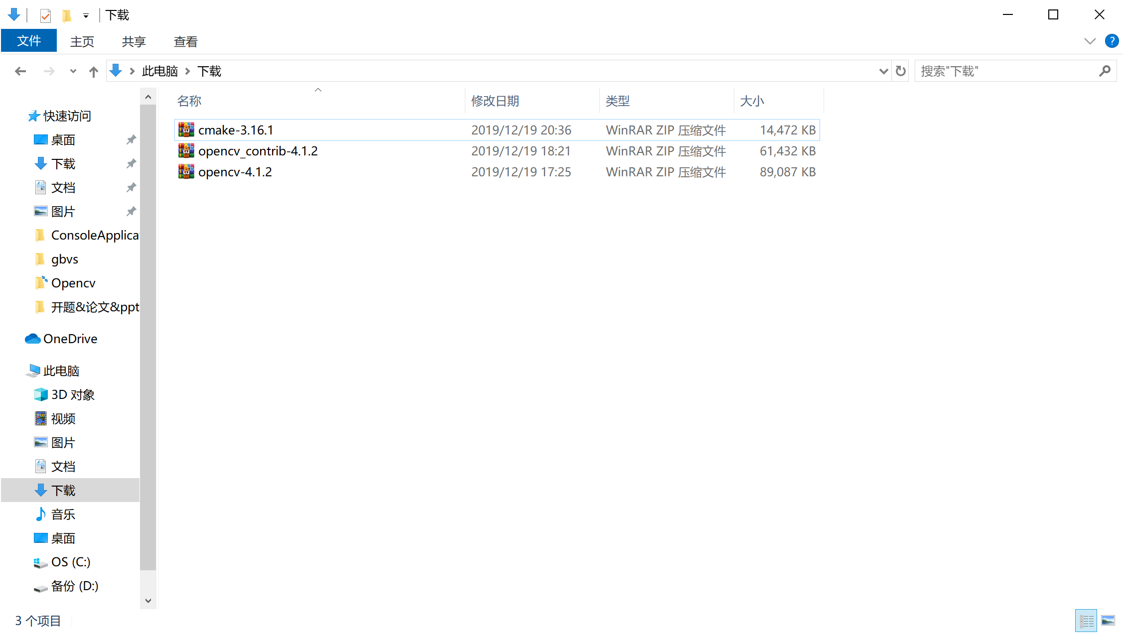 因为我用的是opencv目前最新版本opencv4.1.2,所以我下载了相对应的版本。