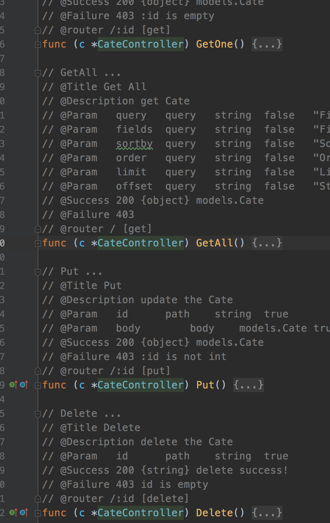 beego 自动会进行源码分析,注意只会在 dev 模式下进行生成,生成的路由放在 “/routers/commentsRouter.go” 文件中。
