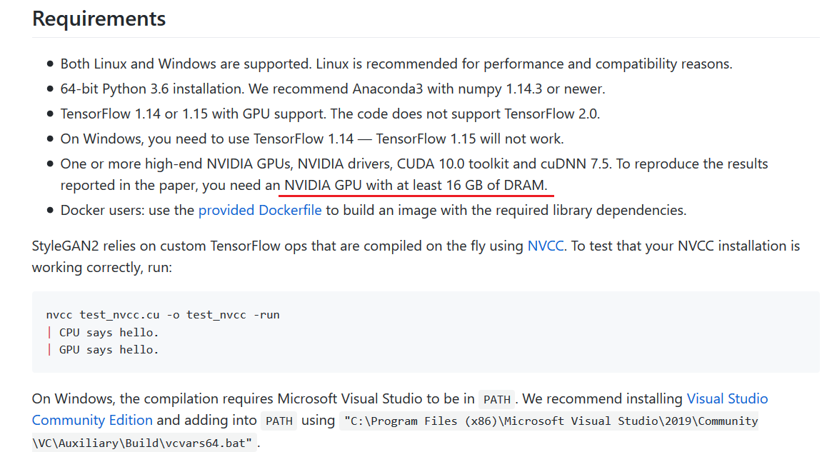 其中,比较触目惊心的是需要有16GB内存的NVIDIA GPU(即:NVIDIA Tesla V100),简单跑了一下它的“run_generator.py”程序,发现我的只有6GB内存的NVIDIA Geforce GTX 1060也可以跑起来。个人感觉,如果不去“训练模型”,只是跑一些简单的应用例子,普通的显卡也可以胜任。