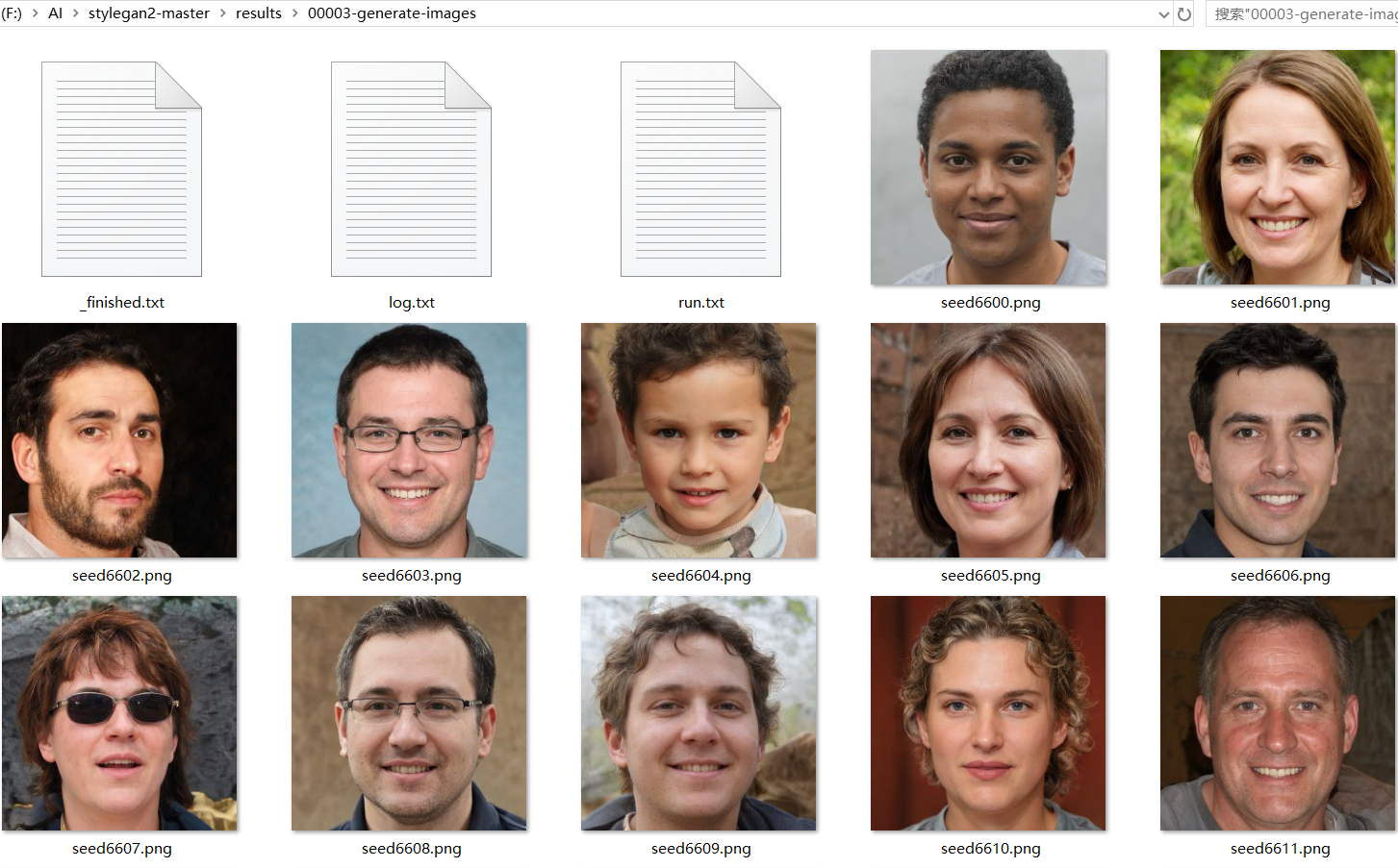 运算的结果放在“.\results”下面,的确如官网所说,在StyleGAN中频繁出现与发梢、耳边、肩头等处的斑点似的伪影(artifacts)彻底消除了,人像背景也显得更加“干净”,如下图所示: