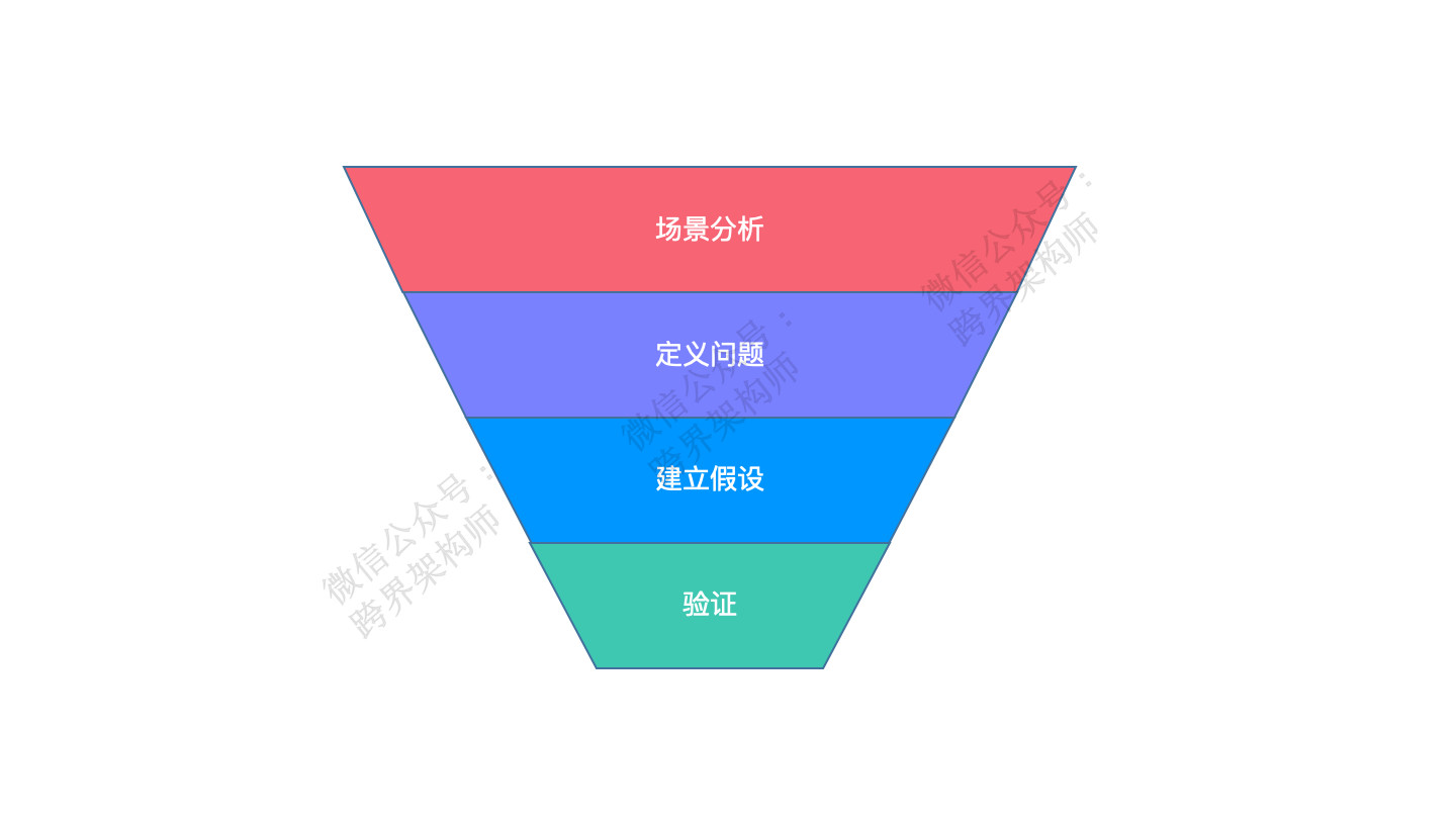 这个“漏斗”分为几个阶段,场景分析、定义问题、建立假设、验证。