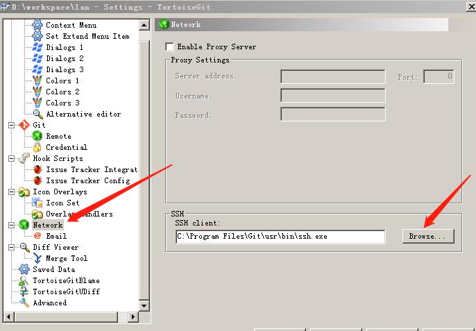 右键菜单 --》 TortoiseGit --》settings --》network --》SSH client