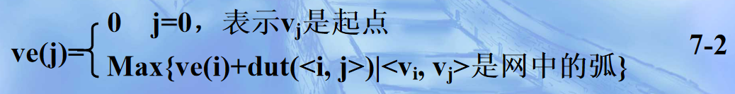 含义是:源点事件的最早发生时间设为;除源点外,只有进入顶点的所有弧所代表的活动全部结束后,事件才能发生。即只有的所有前驱事件的最早发生时间计算出来后,才能计算 。