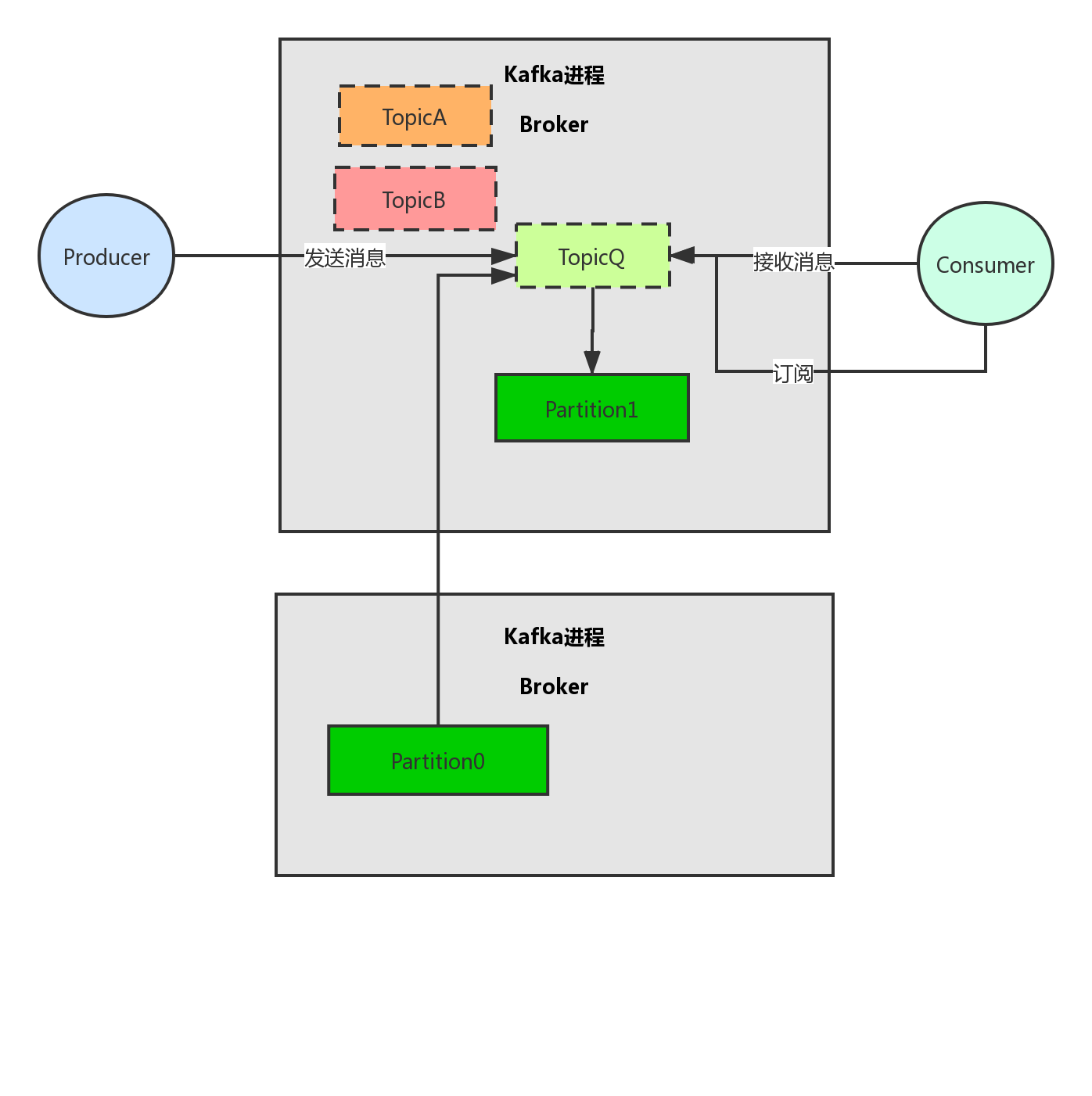 Broker,Kafka是可以分布式部署集群,集群中多台服务器,每台部署一个Kafka进程,这个Kafka进程就称之为Broker。