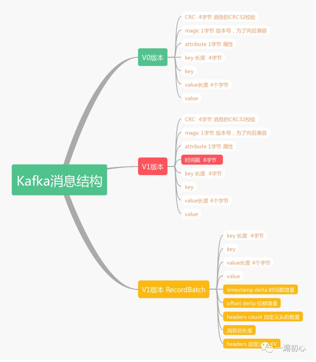 而Kafka的消息结构设计也随着版本的升级,有很多变化,正是因为对消息结构的优良设计,从而做到了存储紧凑,节省磁盘的存储空间。消息的格式是这样子滴: