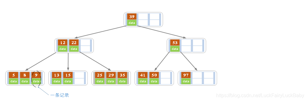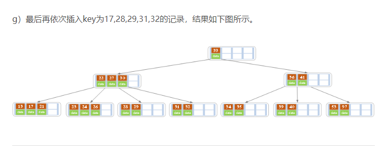 - 内部结点中的key都按照从小到大的顺序排列,对于内部结点中的一个key,左树中的所有key都小于它,右子树中的key都大于等于它。叶子结点中的记录也按照key的大小排列。
