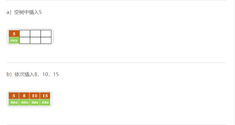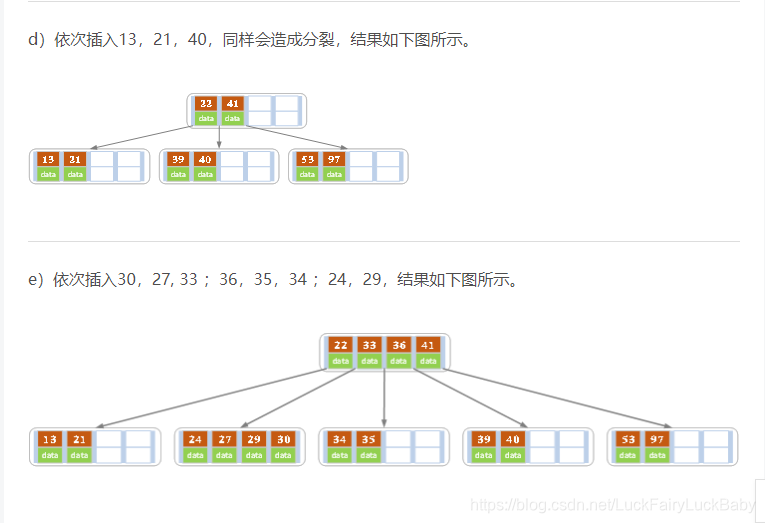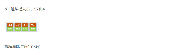 下面是一颗5阶B树的插入过程,5阶B数的结点最少2个key,最多4个key。