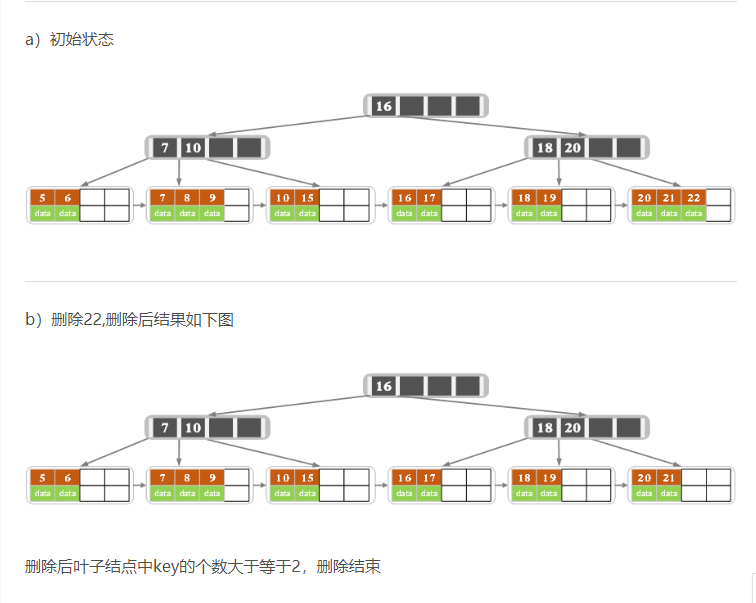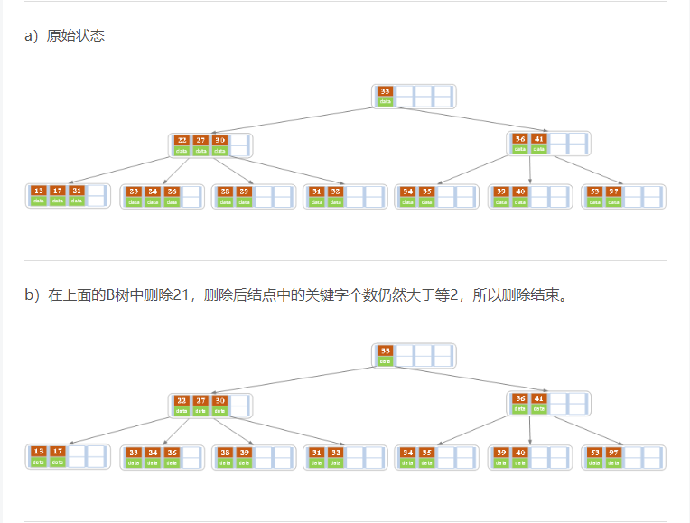 删除操作是指,根据key删除记录,如果B树中的记录中不存在对应key的记录,则删除失败