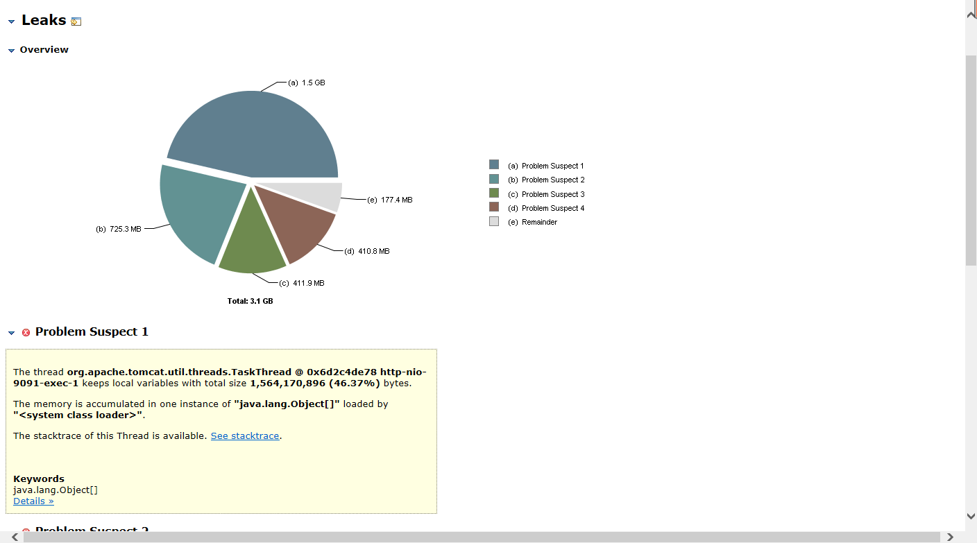 9.然后使用leak suspects 自动分析下哪个问题最大