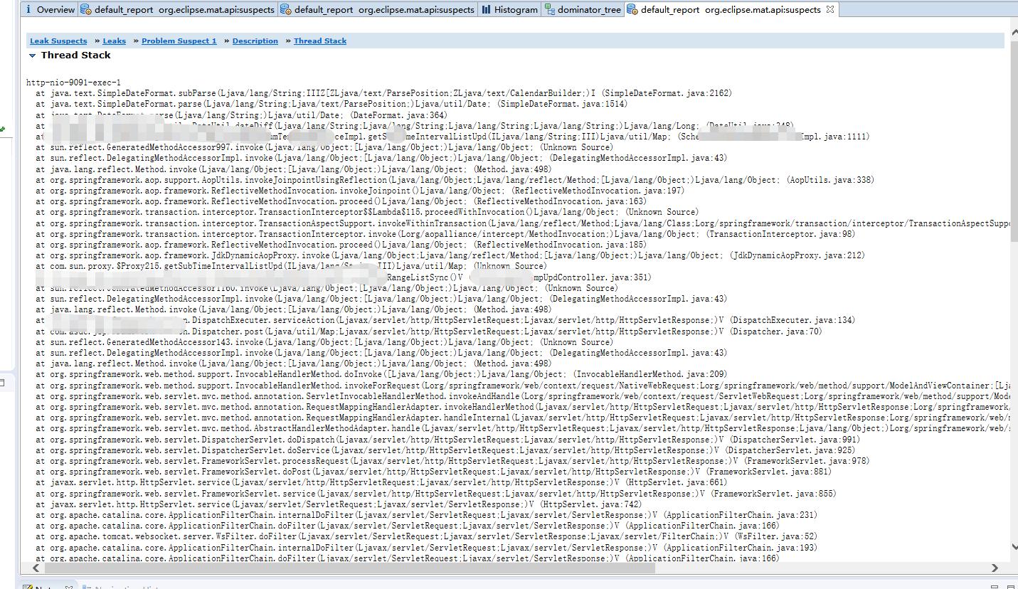 查看了一下果然报错接口的数据跟 2千万条数据有关。 查看代码发现 有可能造成死循环 不停存数据 还每次创建 dateformat。这个玩意可是并发老阻塞了。