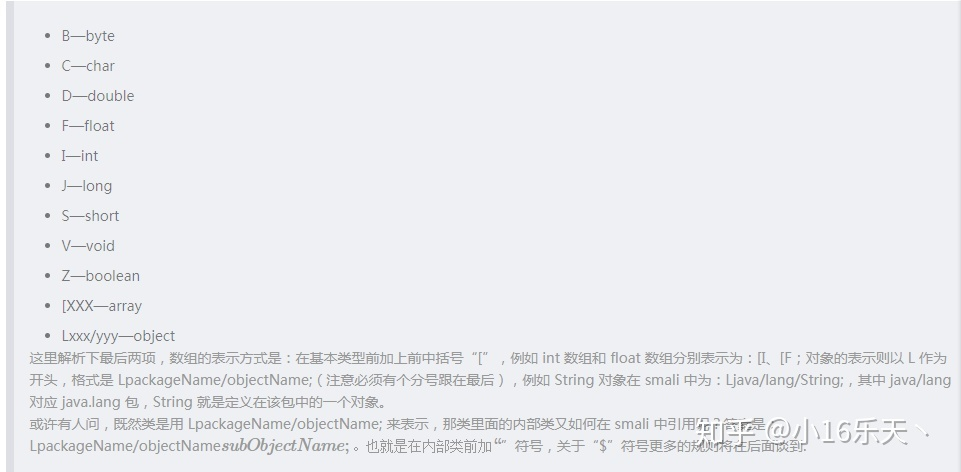 当我们对 APK 文件进行反编译后,便会生成此类文件。在Davlik字节码中,寄存器都是32位的,能够支持任何类型,64位类型(Long/Double)用2个寄存器表示;Dalvik字节码有两种类型:原始类型;引用类型(包括对象和数组)