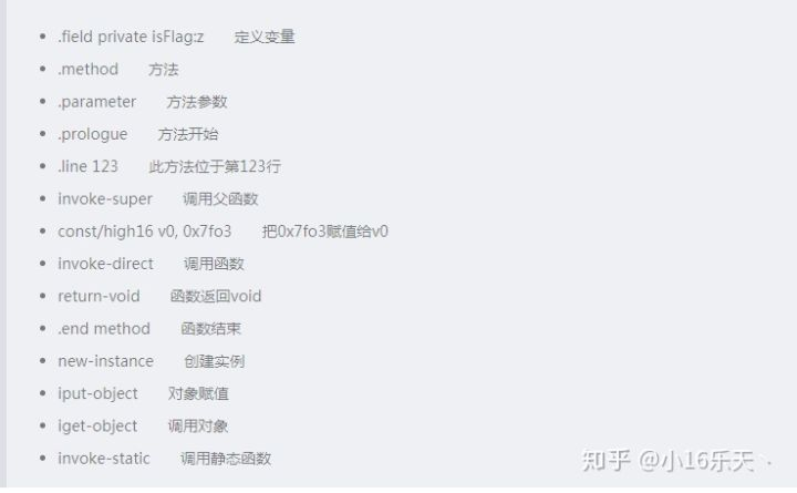 (2).invoke-super:调用父类方法用的指令,一般用于调用onCreate、onDestroy等方法。