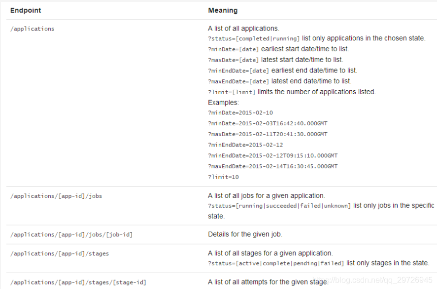 hadoop000:18080/api/v1/applications/application-id/jobs/job-id 具体一个应用下一个job信息