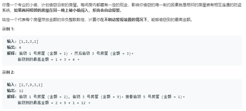 //2.状态转移方程 dp[i] = max(dp[i-2]+nums[i] , dp[i-1]) 在抢劫dp[i-2] + nums[i] 和抢劫dp[i-1]之间衡量