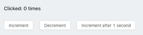 实现这样的一个组件,有三个按钮,其中两个是同步任务,另外一个按钮是异步任务,点击之后1秒计数才会增加: